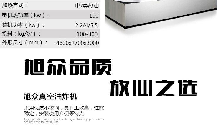 ●雙室采用上下兩個罐,脫油時確保絕對無回油,使含油、含水率低。油炸、脫油、脫水、油過濾一體化設計,在真空下連續性完成,產品含油量低,產品處于負壓狀態,在這種相對缺氧的條件下進行食品加工,可以減輕甚至避免氧化作用(例如脂肪酸敗、酶促褐變和其他氧化變質等)所帶來的危害。在負壓狀態,以油作為傳熱媒介,食品內部的水分(自由水和部分結合水)會急劇蒸發而噴出,使組織形成疏松多孔的結構。