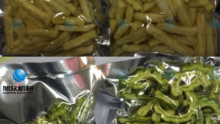 ●保色作用:采用真空油炸,油炸溫度大大降低,而且油炸鍋內的氧氣濃度也大幅度降低。油炸食品不易褪色、變色、褐變,可以保持原料本身的顏色。如獼猴桃極易受熱褐變,若采用真空油炸,可以保持其綠色。