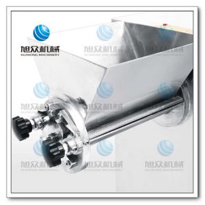 搖擺式顆粒機(jī)運(yùn)行時(shí),加料理和篩網(wǎng)位置的松緊直接影響制得顆粒的質(zhì)量。加料斗中加料量多而篩網(wǎng)夾得比較松時(shí),由于滾筒旋轉(zhuǎn)時(shí)能增加軟材通過(guò)篩網(wǎng)的次數(shù),均能使得的顆粒堅(jiān)硬。